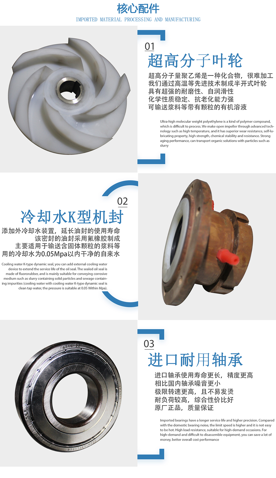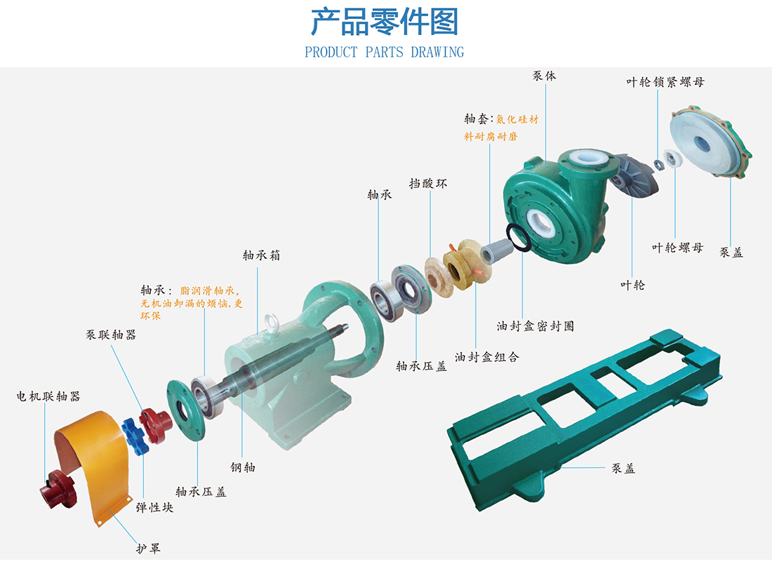 設(shè)計特點:半開式葉輪、單級單吸懸臂式離心泵,過流部件全部采用超高分子量聚乙烯緊襯制造,襯層不小于8mm。用途:該泵具有耐腐耐磨的優(yōu)良性能,廣泛適用于各種不同的工況,如硫酸磷肥業(yè)(磷酸料漿、含硅膠的氟硅酸、母液等);有色金屬冶煉業(yè)(鋅、鉛、金、銀、銅錳鈷稀土等濕法冶煉的各種酸液、腐蝕性礦漿料漿電解液等);水處理;鋼鐵企業(yè)等行業(yè),即適用清夜也使用料漿。流量范圍:10T/h-1600T/h,揚程范圍:20m-50m,功率范圍:3kw-400kw,運行溫度:-20℃—80℃??筛鶕?jù)實際工況要求變更配置。