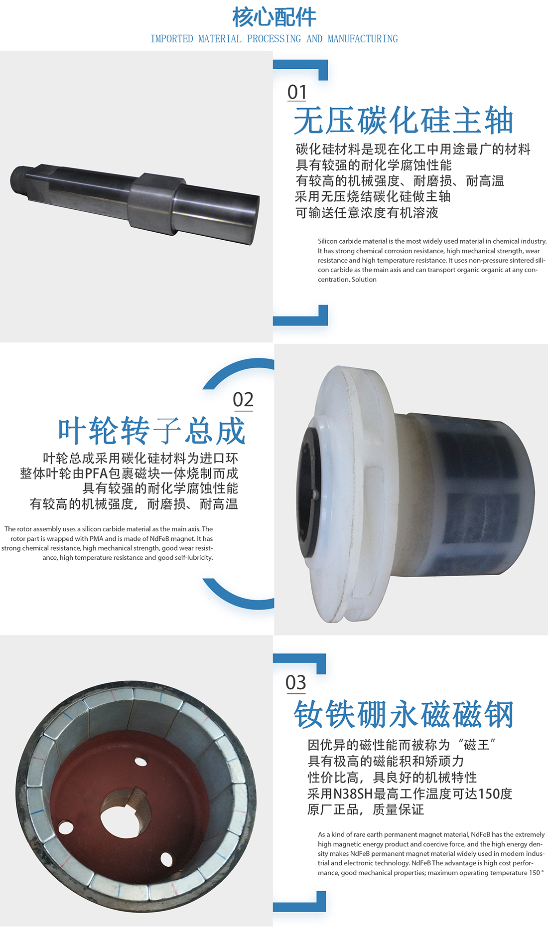 設(shè)計(jì)特點(diǎn):泵室完全封閉,通過磁力偶合器間接驅(qū)動(dòng)葉輪工作,取消了軸封,達(dá)到了無泄漏、無污染的工況要求。用途:可以安全輸送強(qiáng)酸、強(qiáng)堿、劇毒、有機(jī)溶劑、及純凈、貴重的化學(xué)介質(zhì),適用于各種化工流程,充分滿足嚴(yán)格的安全性、可靠性和生態(tài)環(huán)保要求。流量范圍:0.6T/h-100T/h,揚(yáng)程范圍:2m-50m,功率范圍:0.025kw-30kw,運(yùn)行溫度:-20℃—150℃??筛鶕?jù)實(shí)際工況要求變更配置。